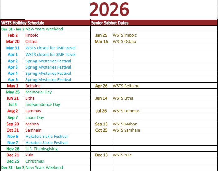 Holiday Schedule for 2026 by Sage Silverstar - Friday, January 30, 2026, 1:01 PM Permalink Discuss this topic (0 replies so far)